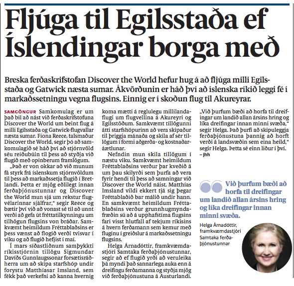 Það virðist fátt sem ekki er hægt að réttlæta í nafni „byggðastefnu”. Ekki hefðu þó margir látið sér til hugar koma að niðurgreiddar utanlandsferðir teldust þar með. En nú hefur nefnd á vegum hins opinbera (ef marka má Fréttablaðið) fundið flugfélag sem er tilbúið til að fljúga milli Egilsstaða og Gatwick svo fremi að ríkið leggi félaginu til fé. Og þeirri hugmynd virðist vel tekið.